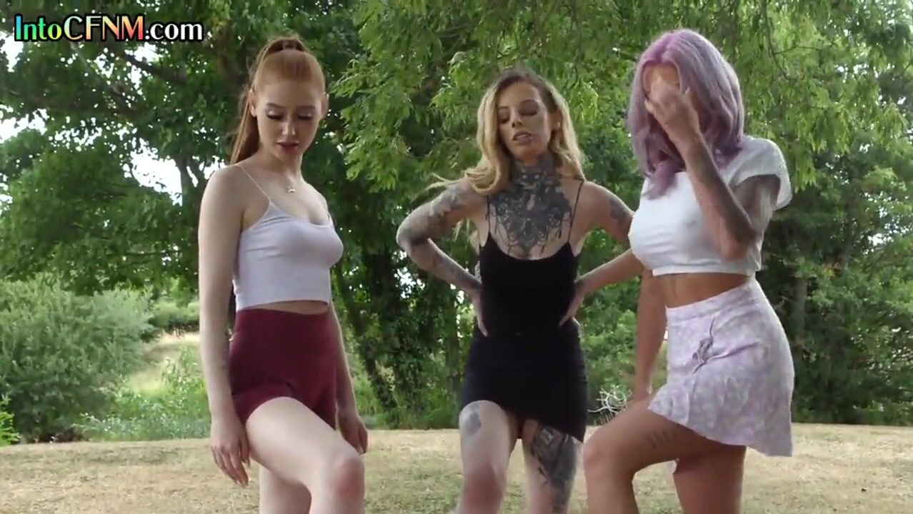 CFNM outdoor British babes wank cock in group HJ action