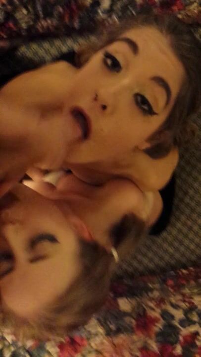 Dutch girl with needle pierced tits sucks cock and gets his cum in her eye