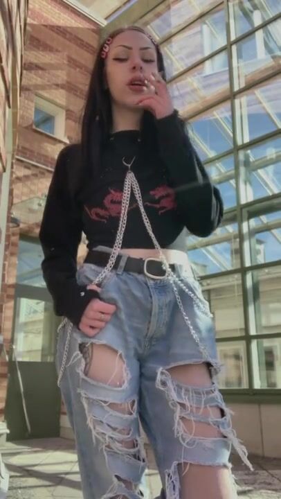 Cute Alt Girl Smoking Outside