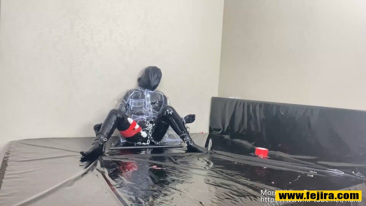 Fejira com Transparent raincoat self bondage