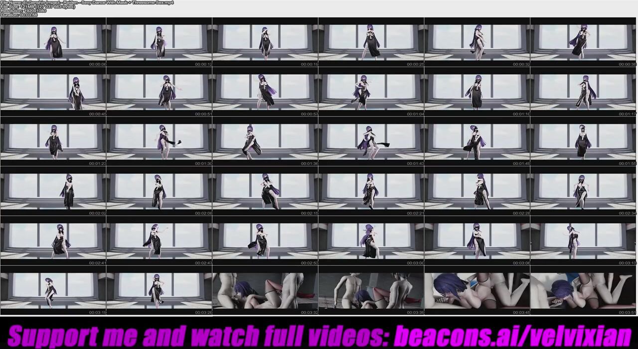 Genshin Impact - Raiden - Sexy Dance With Mask + Threesome Sex (3D HENTAI)