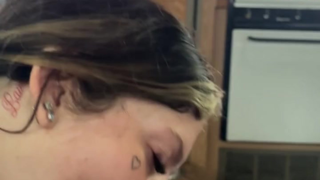 Dutch girl with needle pierced tits sucks cock and gets his cum in her eye