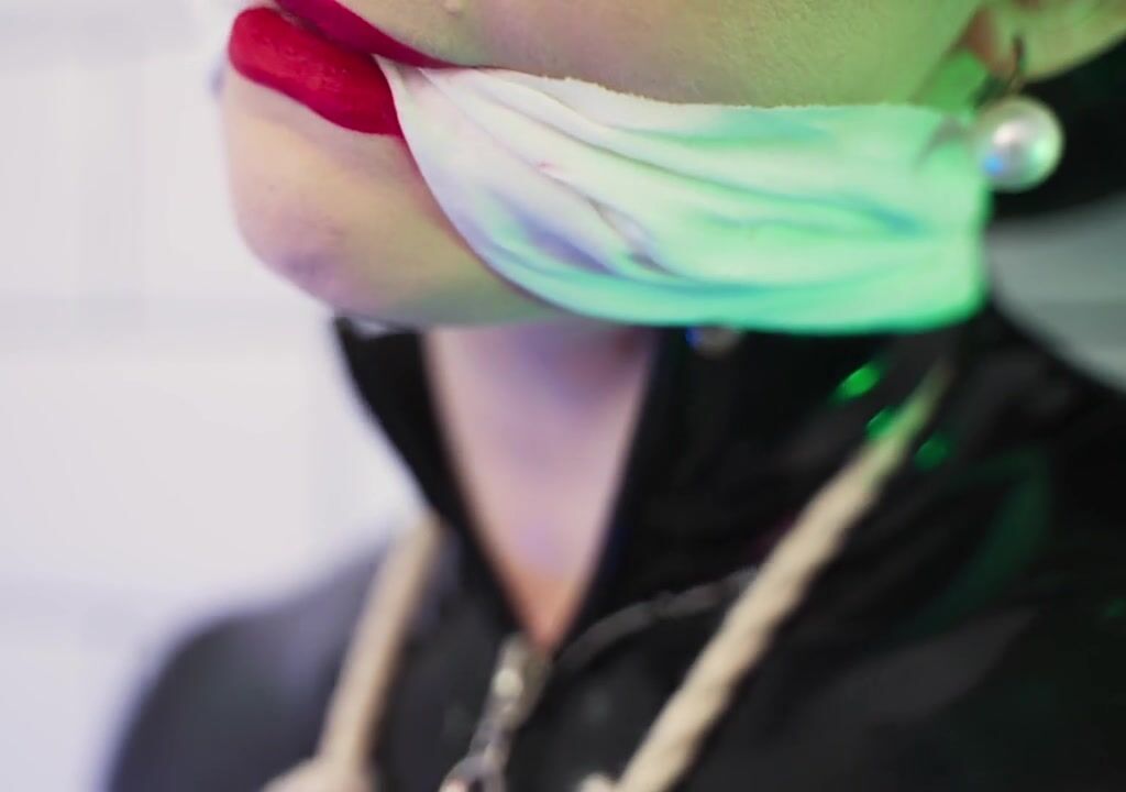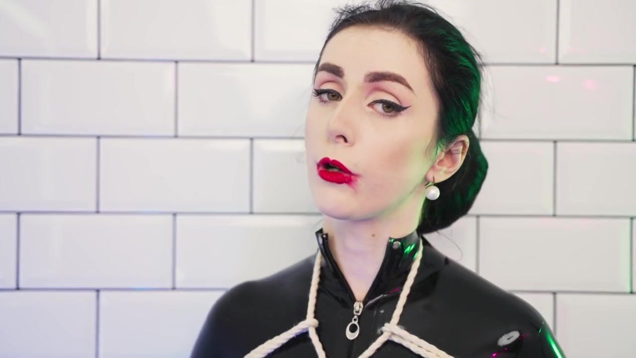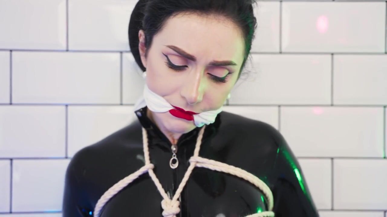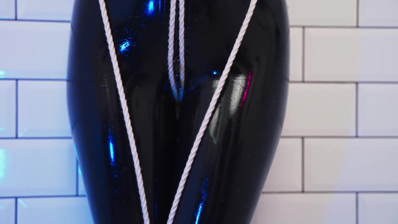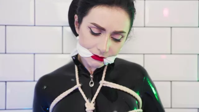 Goddess in latex catsuit tied with ropes