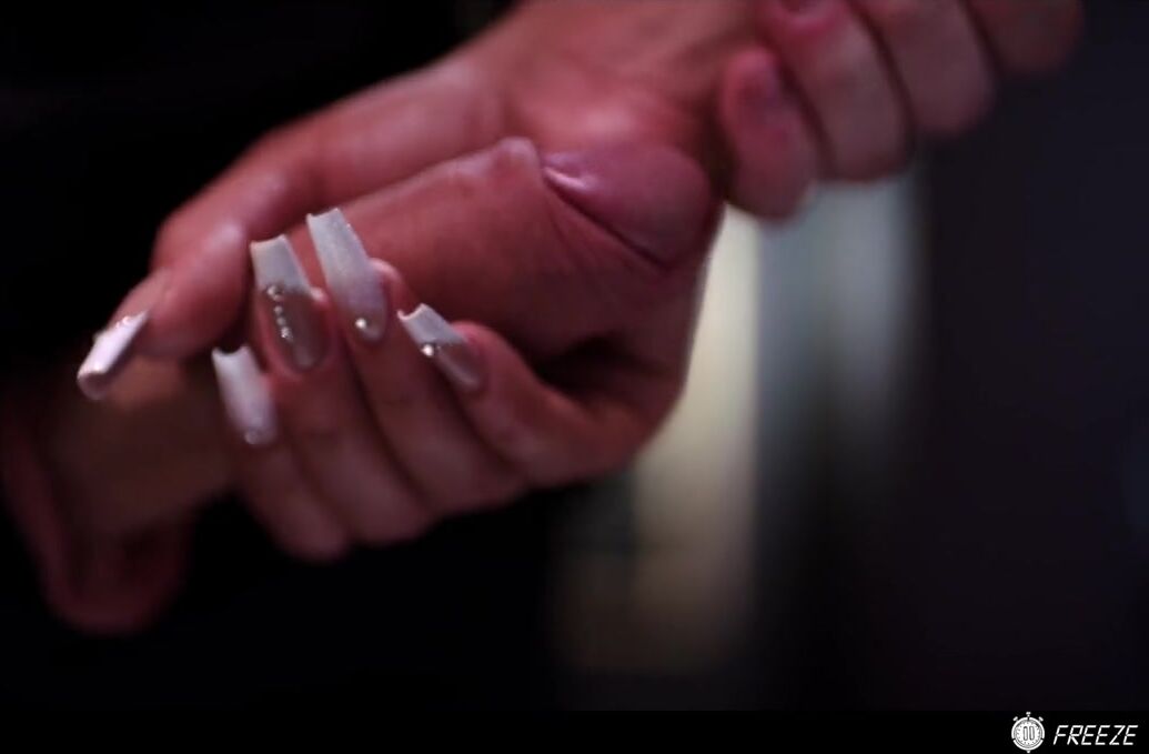 Dutch girl with needle pierced tits sucks cock and gets his cum in her eye