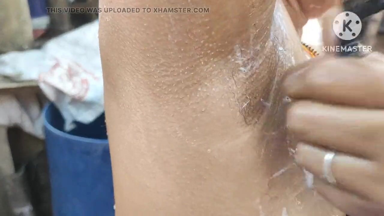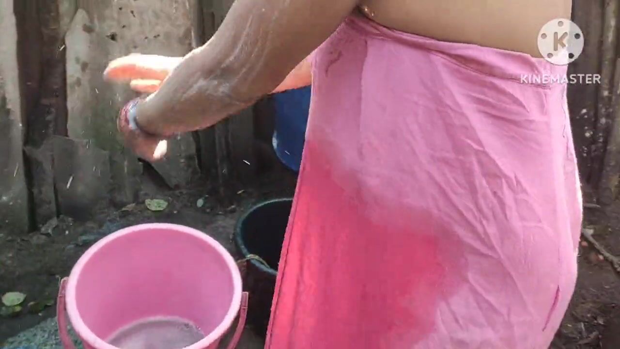 Indian house wife bathing outside