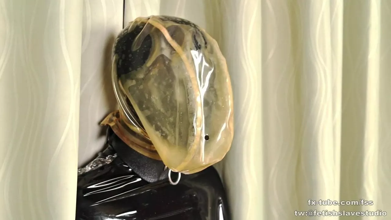 latex girl two layers latex hood breathplay and sleeping bag