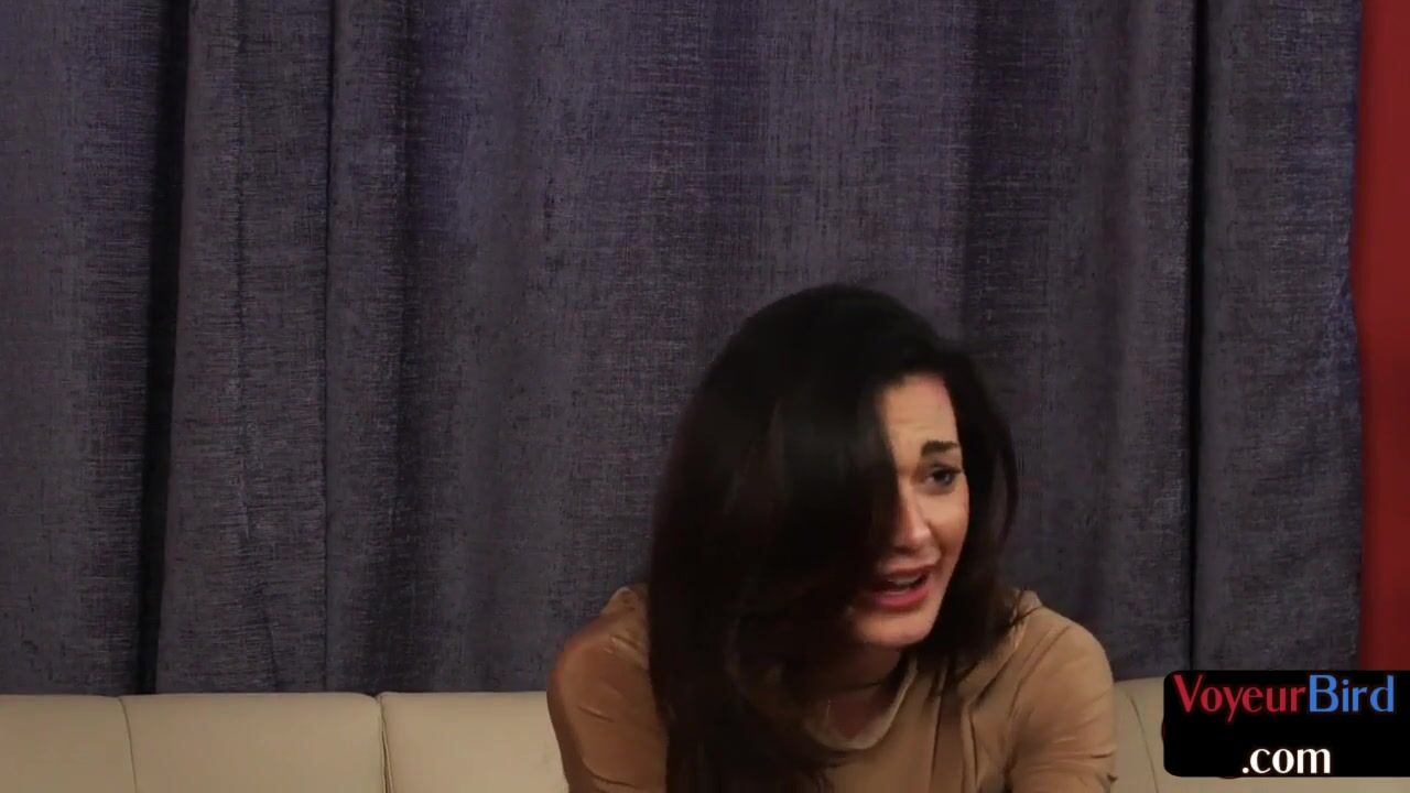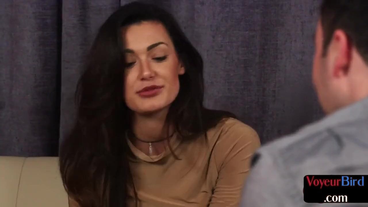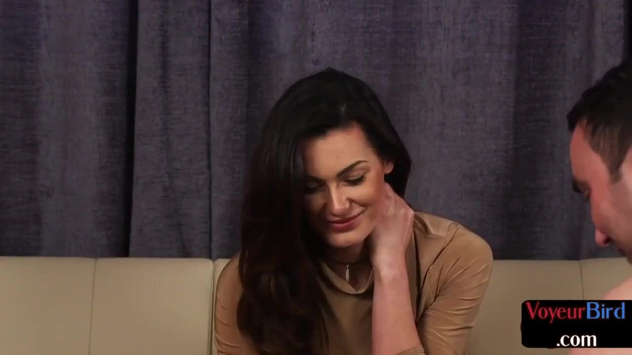 Lingerie babe watches BF jerking on her