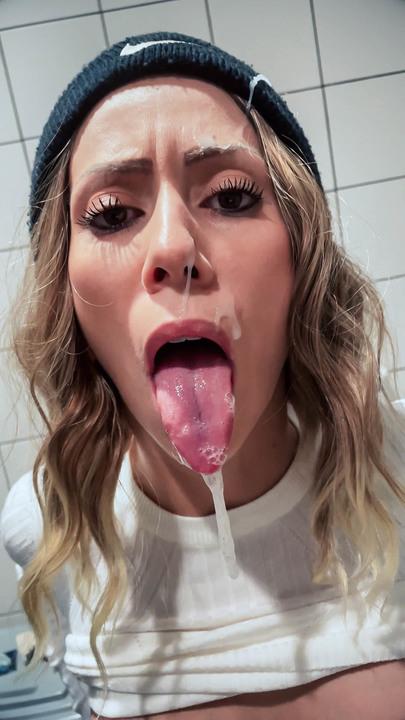 Dutch girl with needle pierced tits sucks cock and gets his cum in her eye