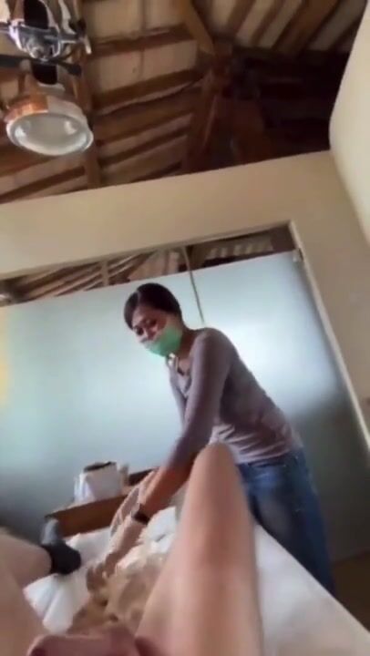 Man Cums on his Asian Esthetician while she Wax him