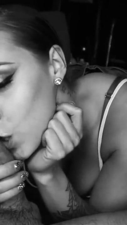 Dutch girl with needle pierced tits sucks cock and gets his cum in her eye