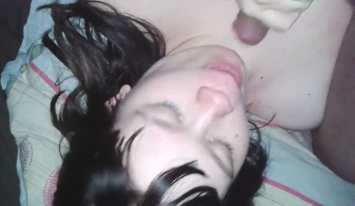 Dutch girl with needle pierced tits sucks cock and gets his cum in her eye
