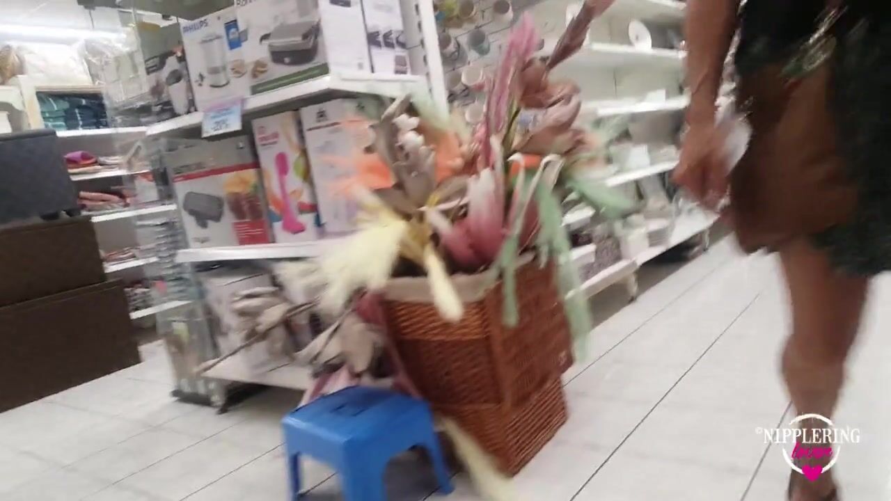 Nippleringlover flashing pierced pussy with big rings stretched labia piercings - public supermarket
