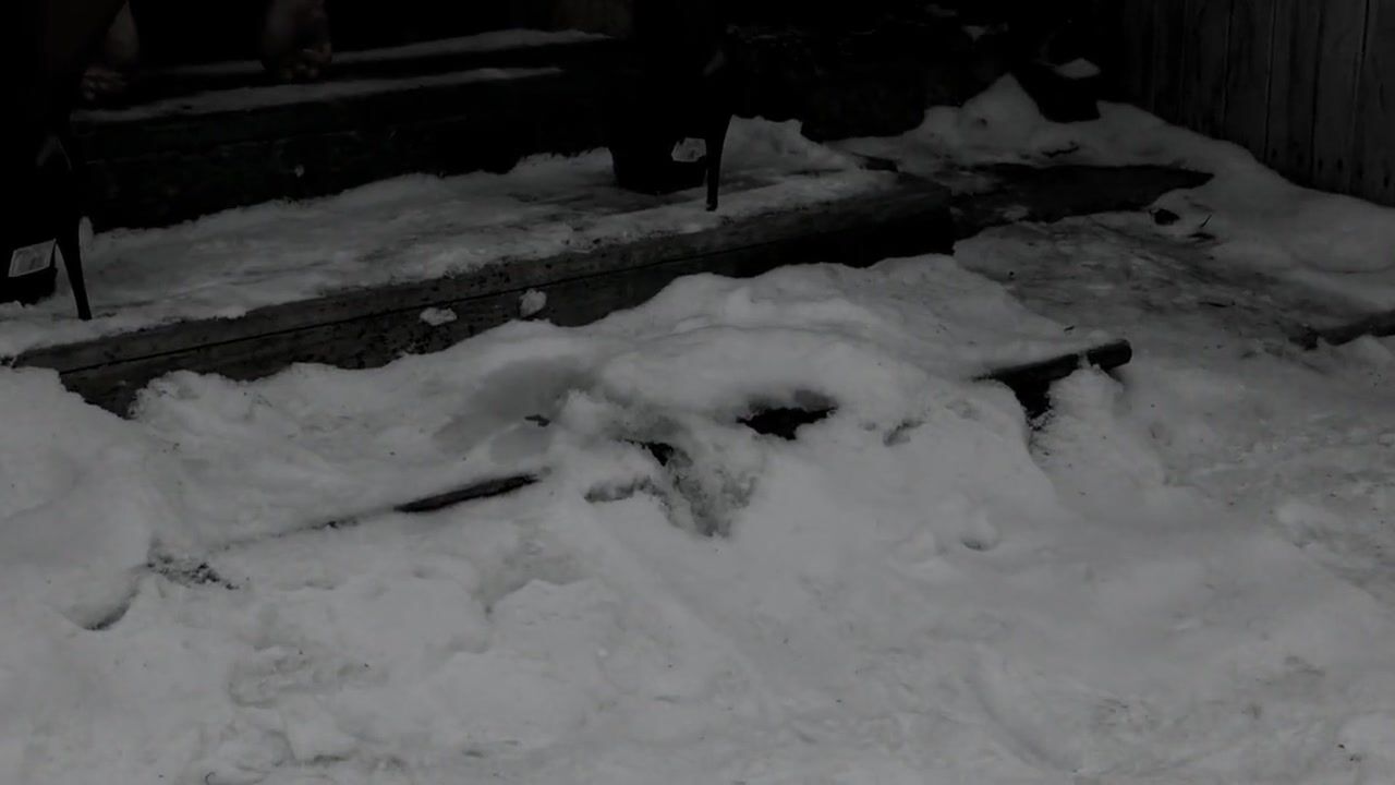 Pissing while standing in the courtyard of an abandoned house by a mature milf with a hairy pussy in