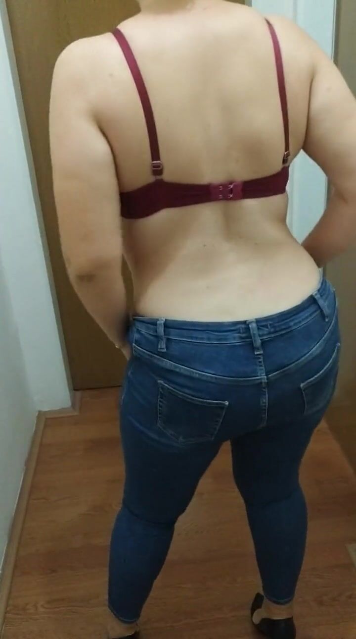 Plump chick in red bra