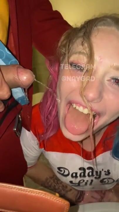 Dutch girl with needle pierced tits sucks cock and gets his cum in her eye