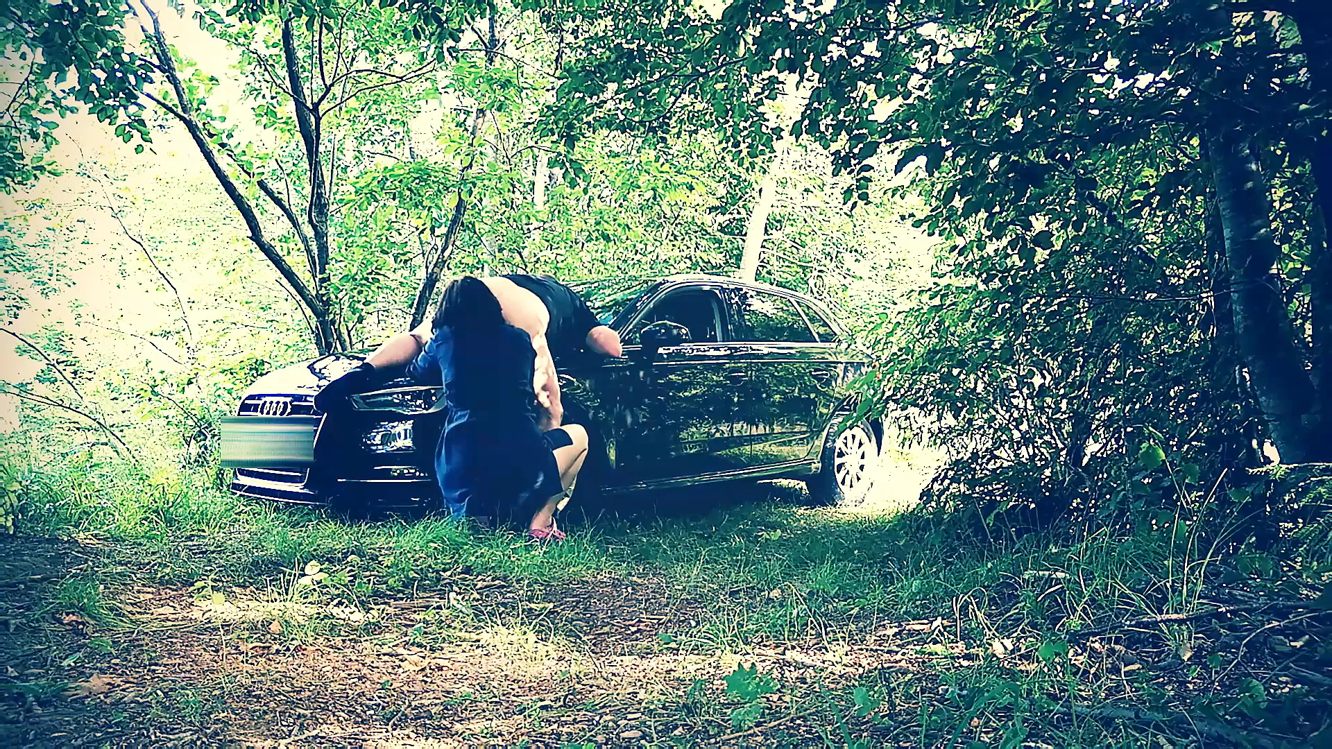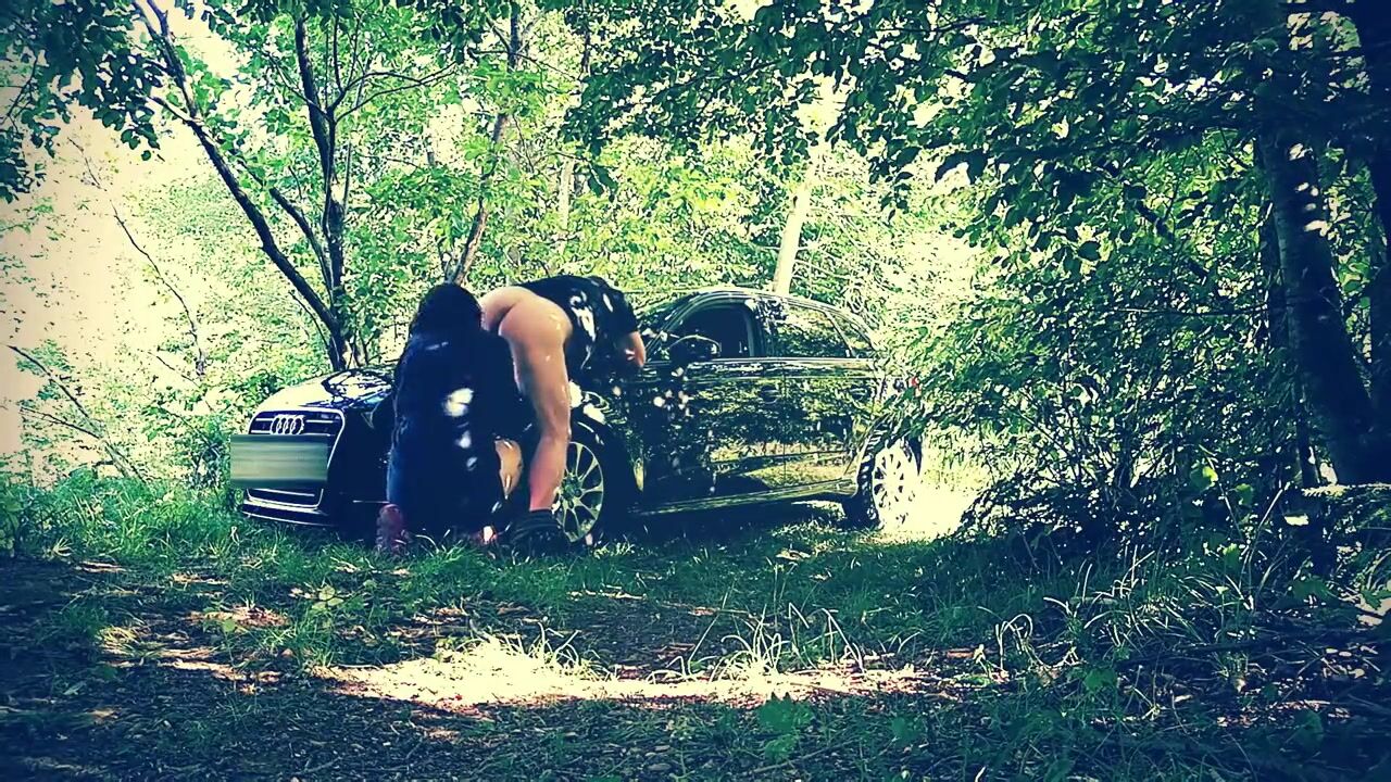 Rimjob and licking sperm from car