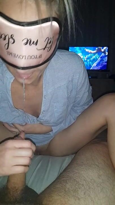 Dutch girl with needle pierced tits sucks cock and gets his cum in her eye