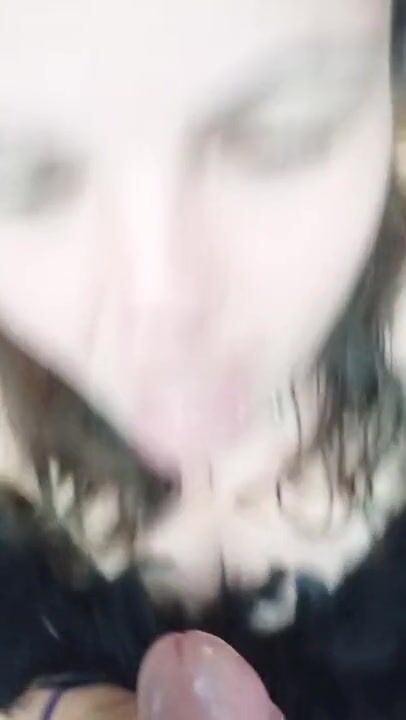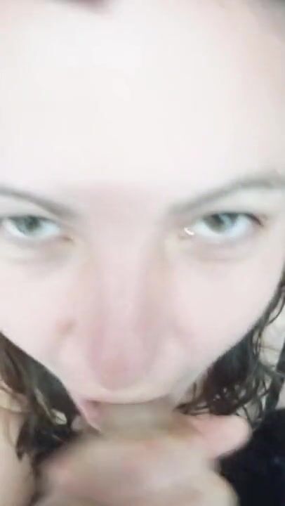 Dutch girl with needle pierced tits sucks cock and gets his cum in her eye