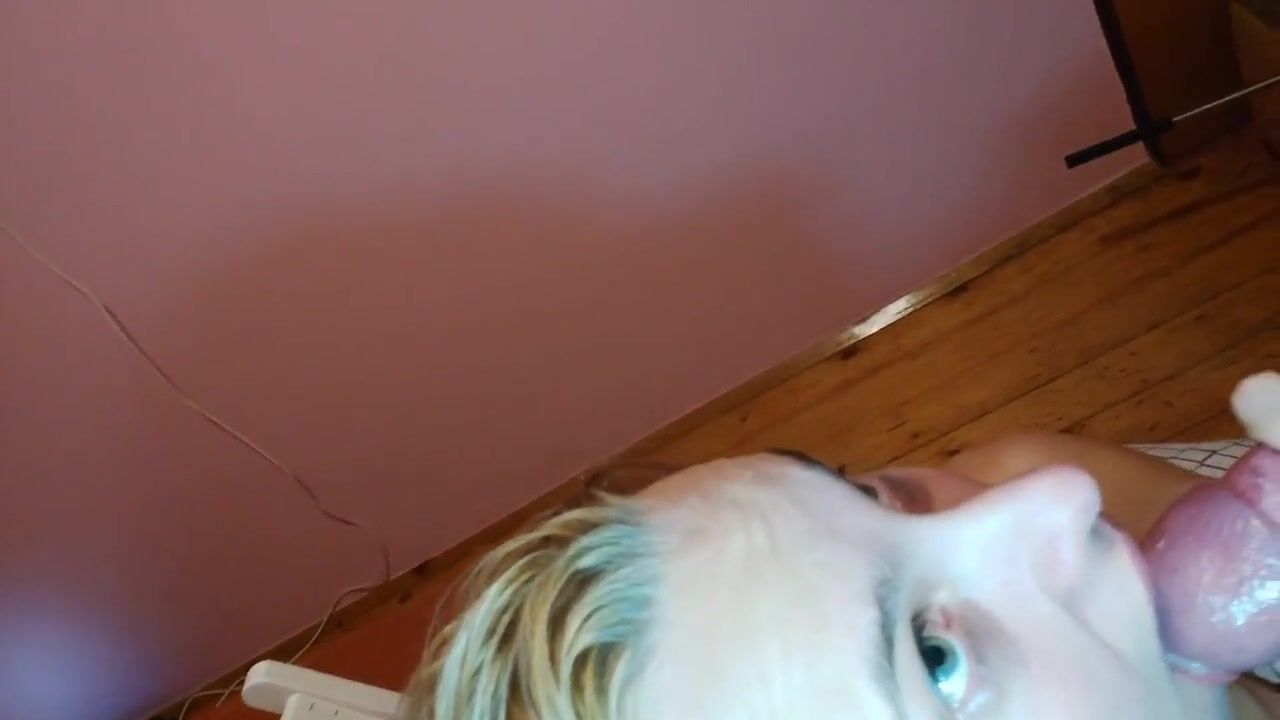 Dutch girl with needle pierced tits sucks cock and gets his cum in her eye