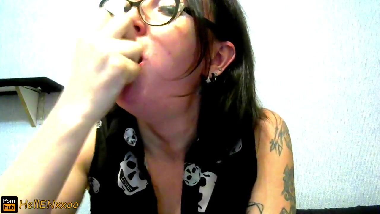 Dutch girl with needle pierced tits sucks cock and gets his cum in her eye