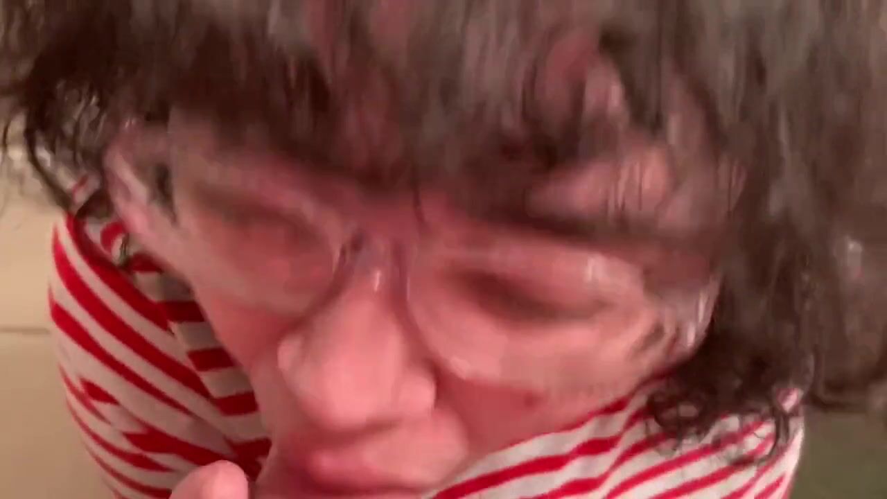 Dutch girl with needle pierced tits sucks cock and gets his cum in her eye
