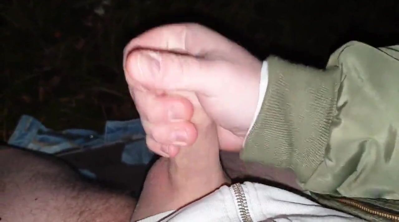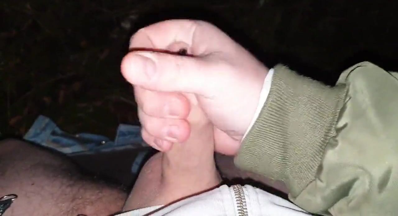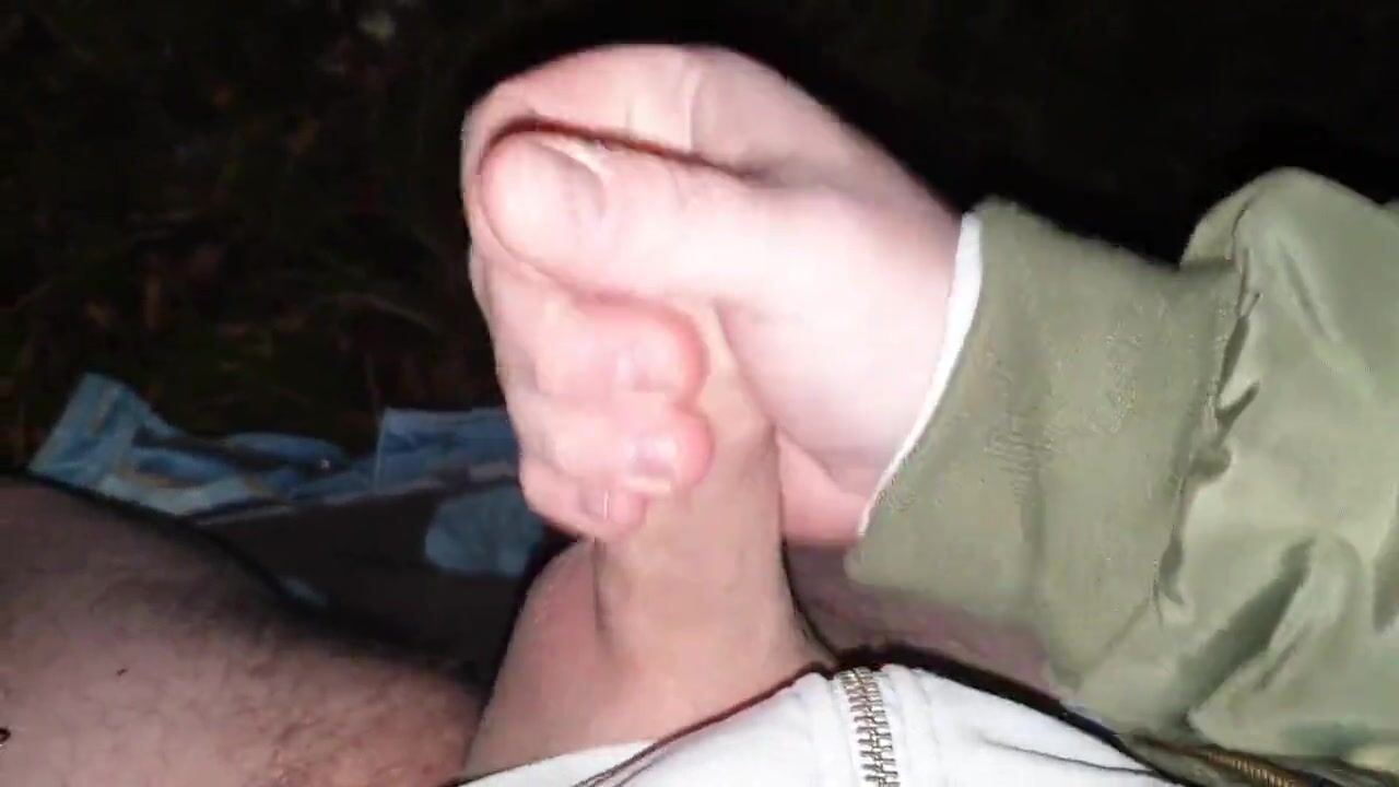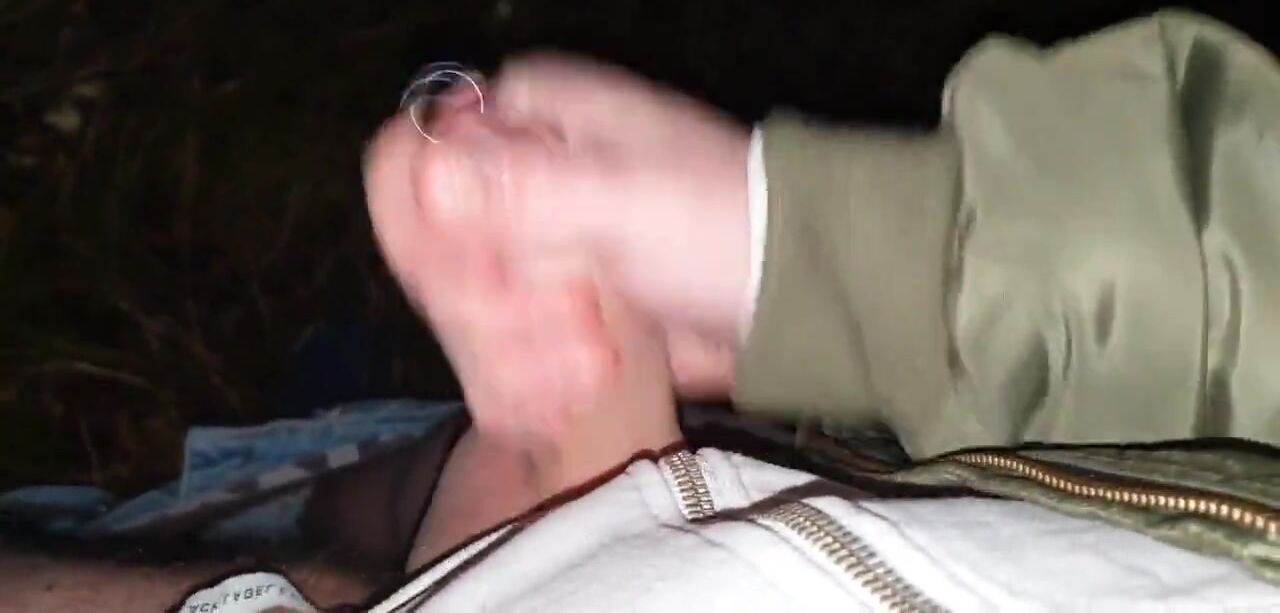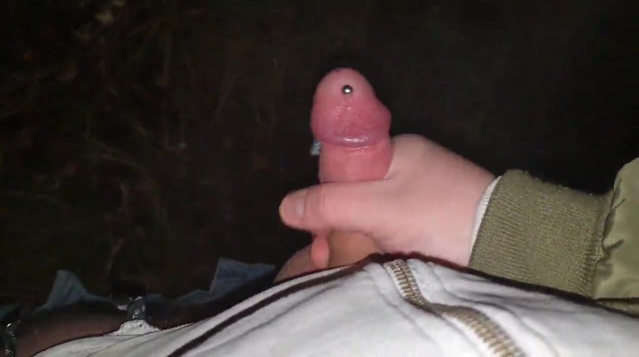 Stroking my pierced cock in the woods + cumshot with moaning