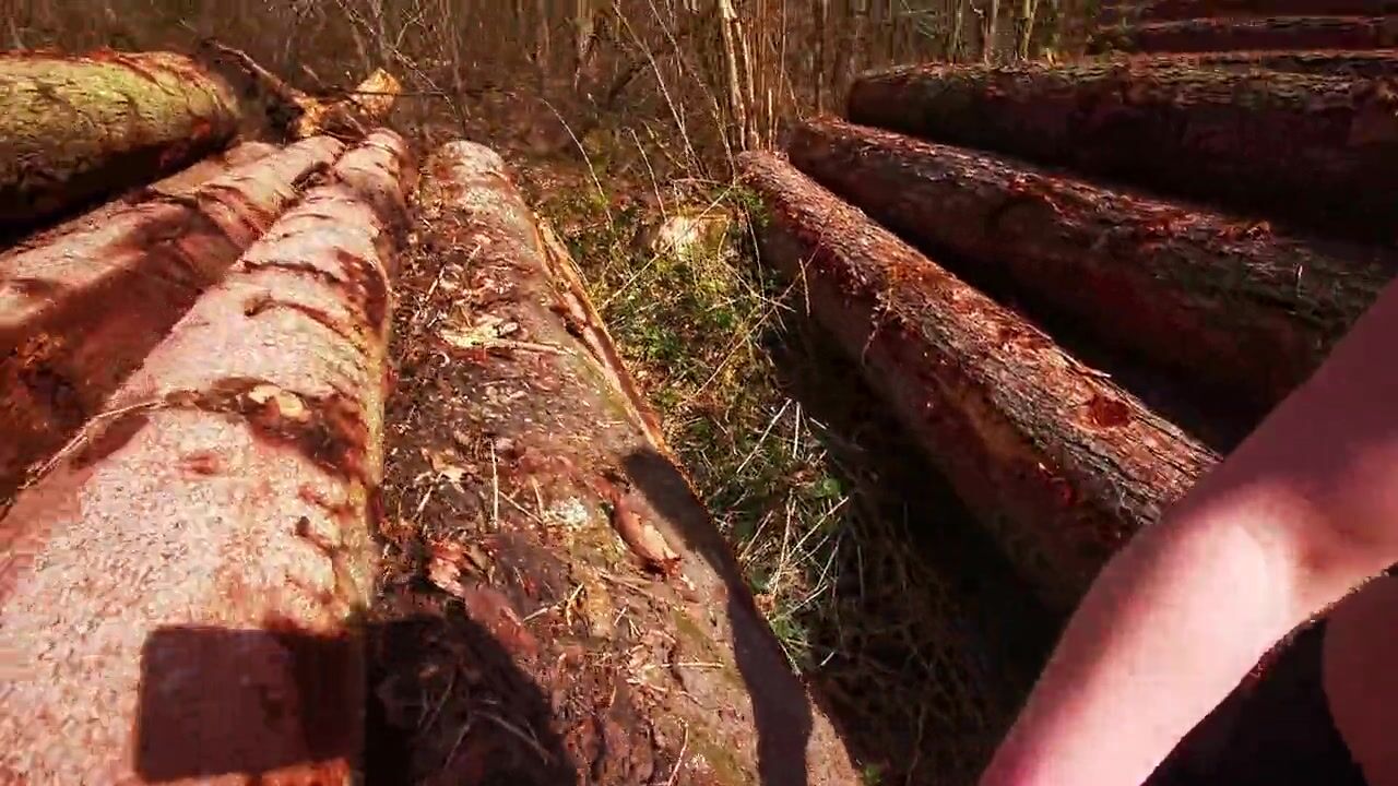 Titslapping between the wood logs