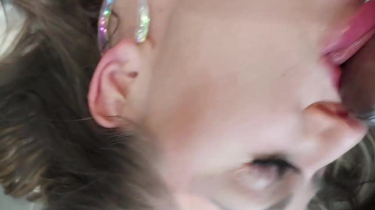 Dutch girl with needle pierced tits sucks cock and gets his cum in her eye