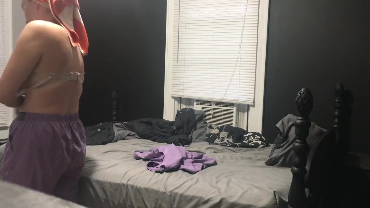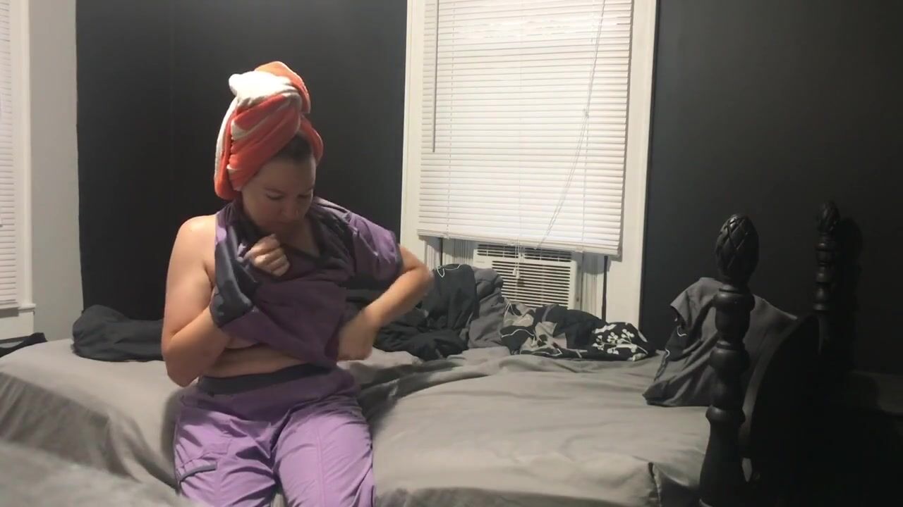 Voyeur NUDE MILF NURSE puts on her scrubs, nice saggy tits