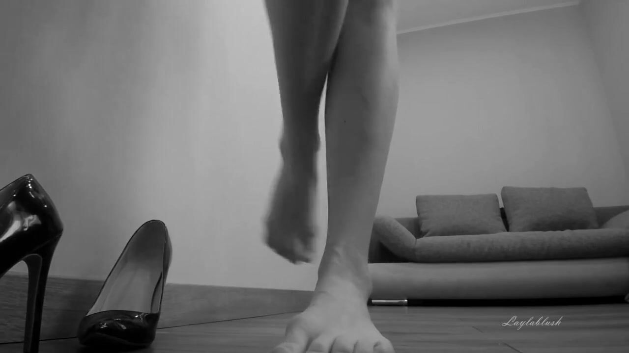 Walks in Heels in a Black Panties and Flash her INNOCENT HOLES