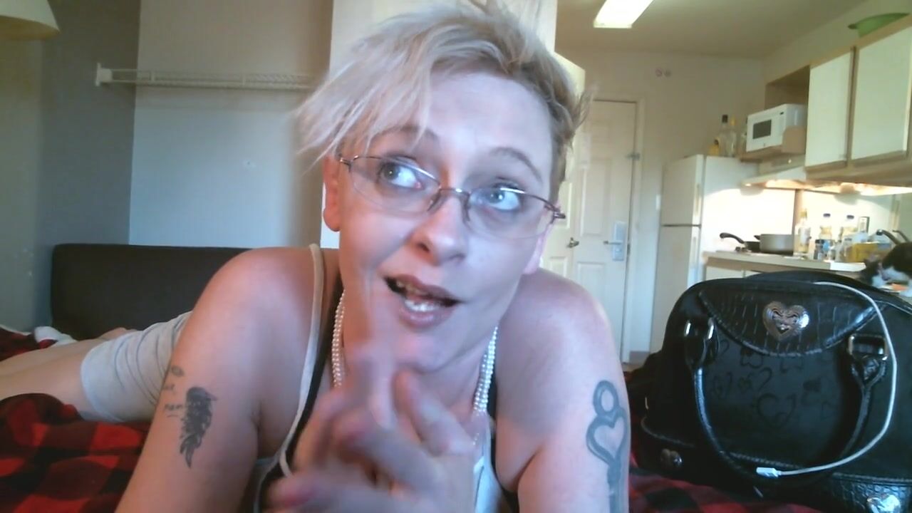 Dutch girl with needle pierced tits sucks cock and gets his cum in her eye