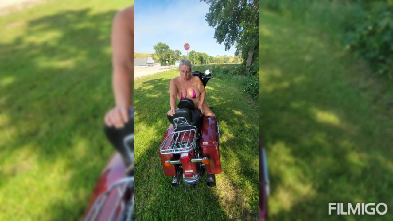 Wife posing with harley outdoors part 3