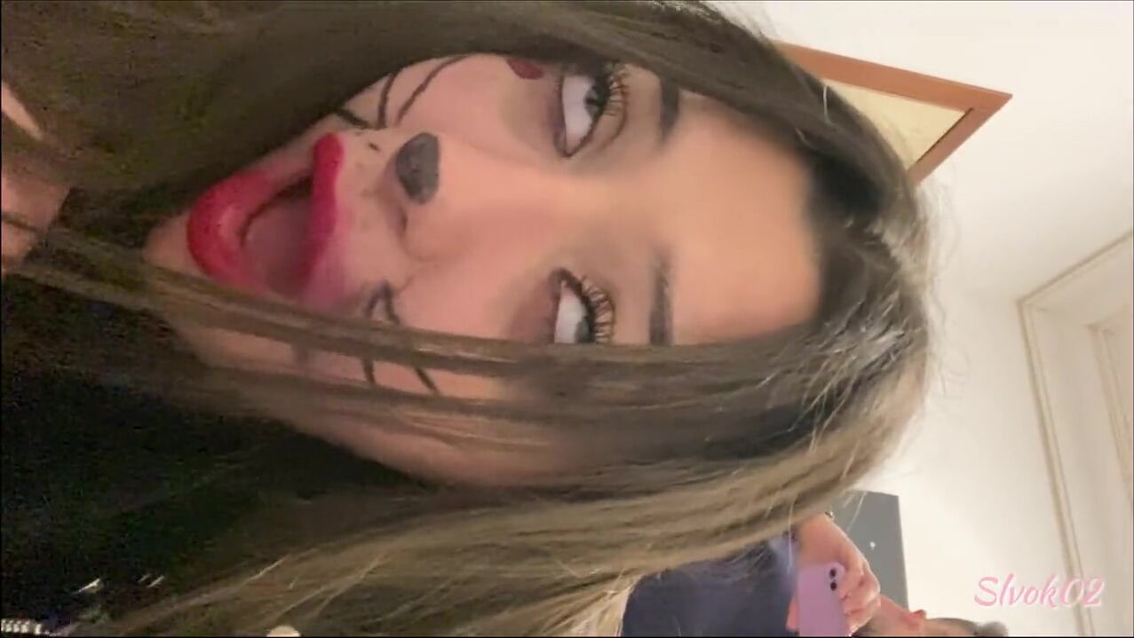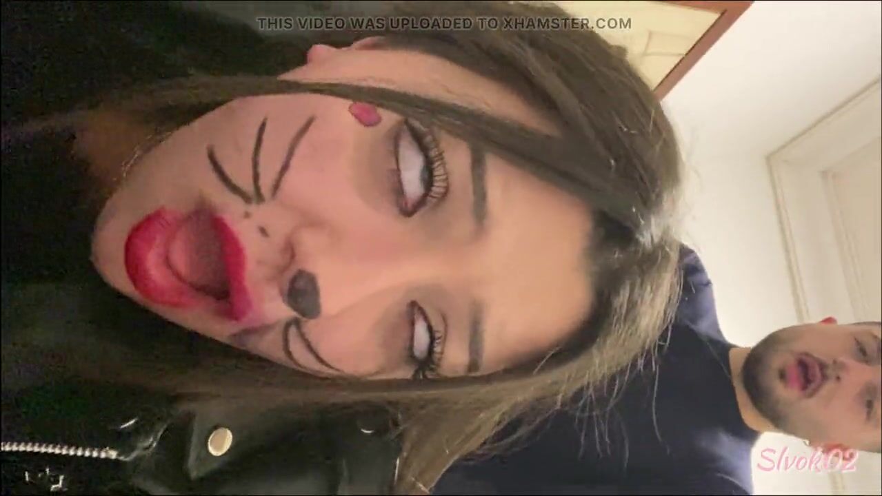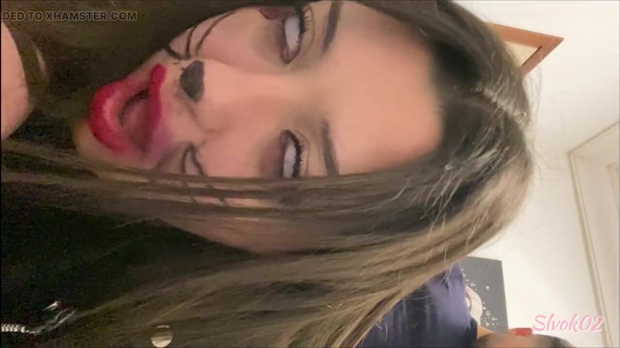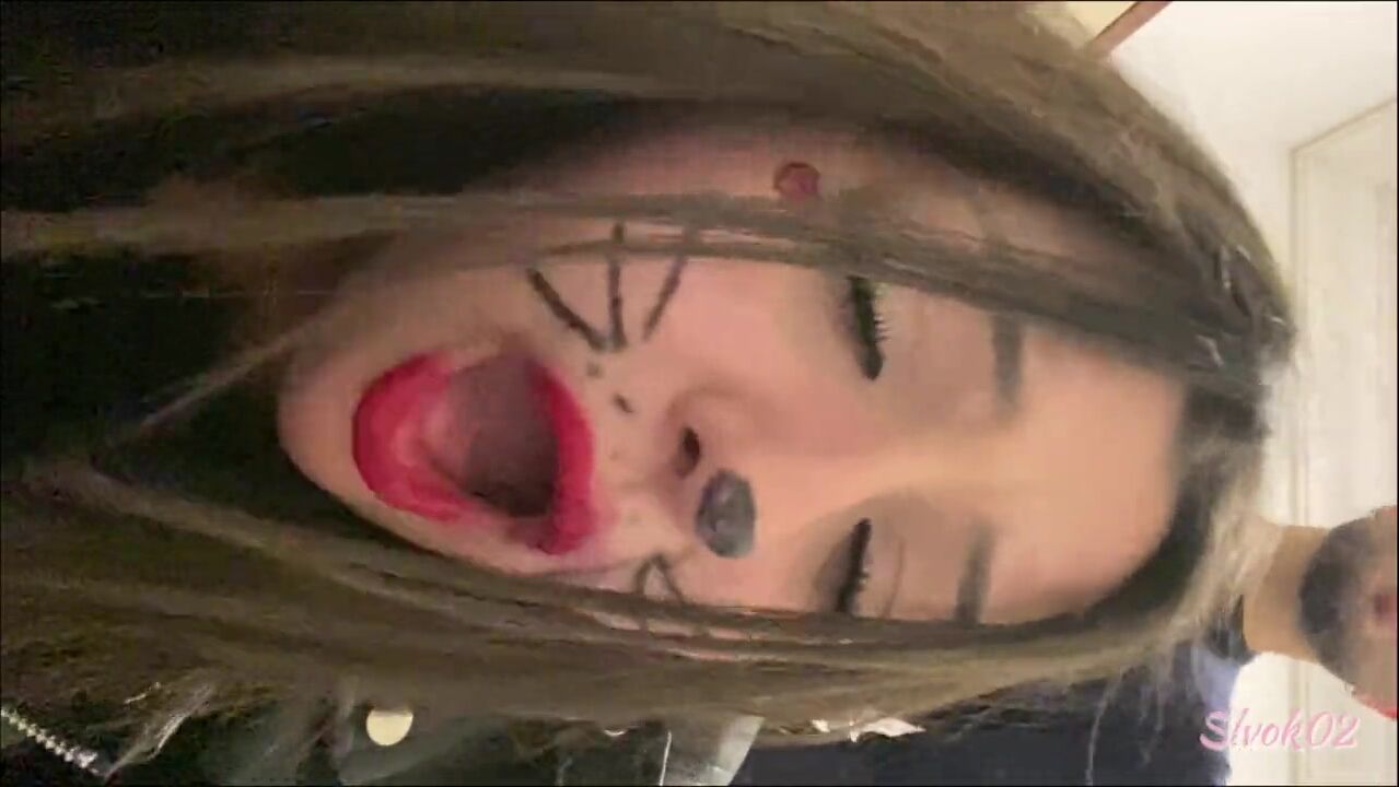 Dutch girl with needle pierced tits sucks cock and gets his cum in her eye